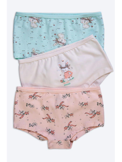 Набор трусиков-шортиков из 3 штук для девочек станет отличным решением для любой ситуации. Нижнее белье выполнено из натурального гипоаллергенного хлопка, который хорошо пропускает воздух и позволяет коже дышать. Трусики-шорты из комплекта представлены в пастельных цветах и украшены милым принтом зайки.