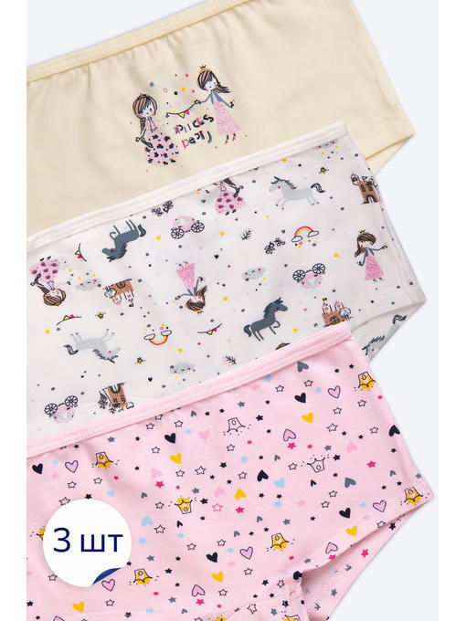 В набор входят трусы с принтом Звездочки и Принцессы. Детское нижнее белье обязательно понравится каждой девочке. Трусы на девочку обеспечивают комфортную посадку к телу, не ограничивая свободу движений. Детские трусики хорошо тянутся и плотно прилегают к телу. Трусы для девочек за счет идеальной посадки практически незаметны под одеждой. Трусы для девочки белье станут необходимой покупкой для любимой доченьки. Рисунок не стирается даже после многочисленных стирок. Ткань не выцветает и не линяет.