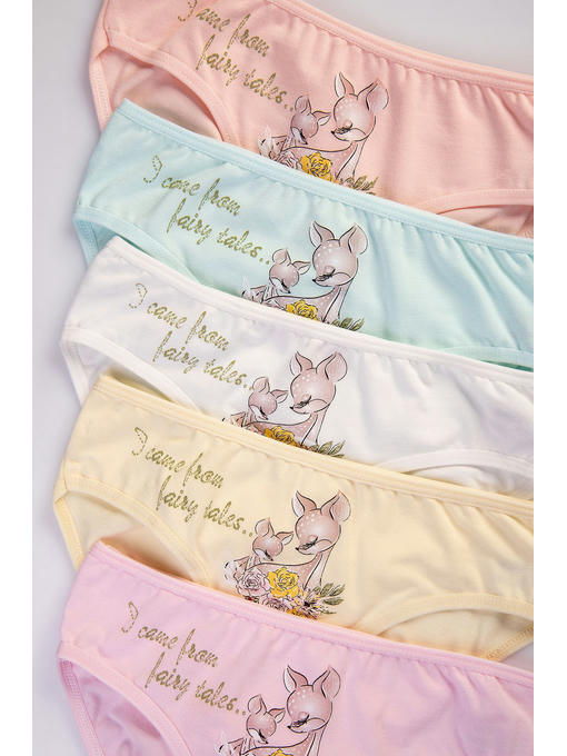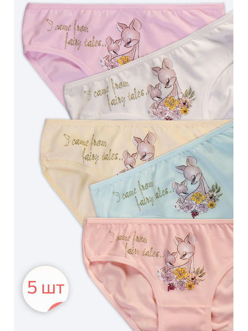 Трусики для девочек представлены в нежных пастельных тонах и украшены милым принтом Оленята, набор из 5 штук. Детские слипы выполнены из натурального хлопка с добавлением эластана.