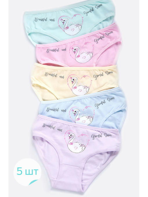 Набор трусов из 5 штук для девочек выполнен из натурального хлопка. Слипы классической средней посадки понравятся юной принцессе благодаря мягкому трикотажу и нежным пастельным цветам.
