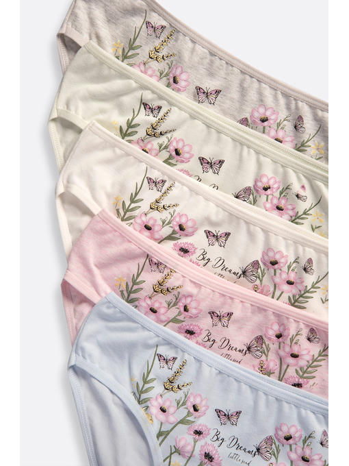 Трусики для девочек и подростков представлены в нежных пастельных тонах и украшены красивым цветочным принтом, набор из 5 штук. Детские слипы выполнены из натурального хлопка с добавлением эластана.