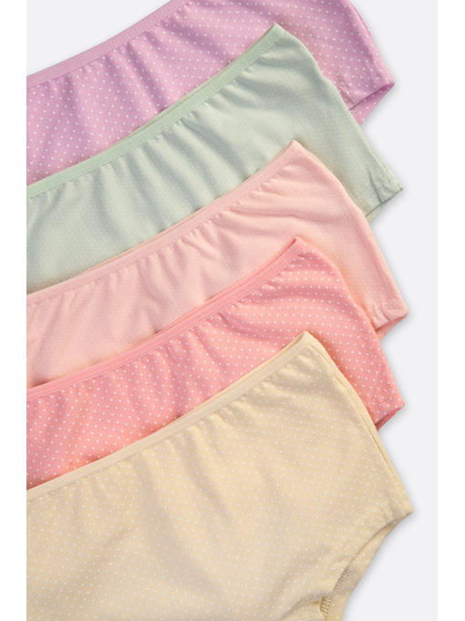Трусы шорты для девочек представлены в нежных пастельных оттенках с принтом в горошек, в наборе 5 штук. Детские трусики выполнены из натурального хлопка с добавлением эластана. Хлопковая ткань приятна к телу, мягкая и прочная. За счет небольшого количества эластана трусики шортики для девочек комфортно сидят и сохраняют первоначальные размеры после стирки. Натуральный хлопок отлично пропускает воздух и позволяет коже дышать.