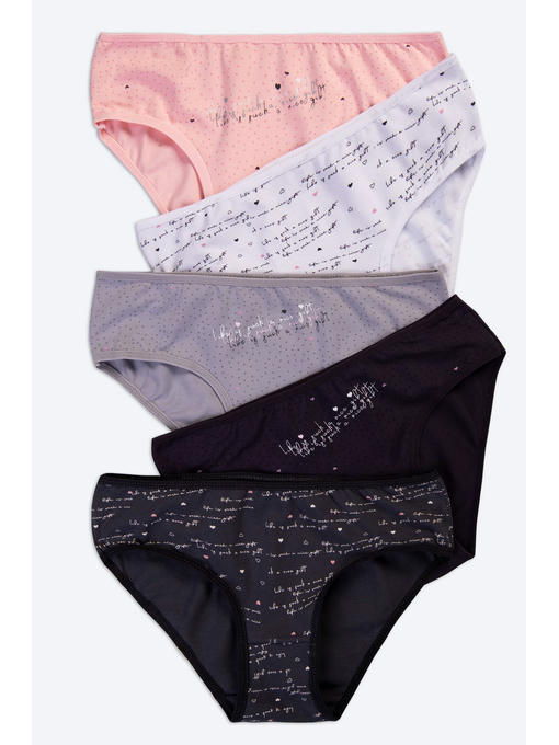 Нежный набор трусов из 5 штук для девочек и подростков выполнен из натурального хлопка с добавлением эластана. Хлопковая ткань приятная к телу, мягкая и прочная. Благодаря небольшому количеству эластана детские трусики комфортно сидят и сохраняют первоначальные размеры после частых стирок.