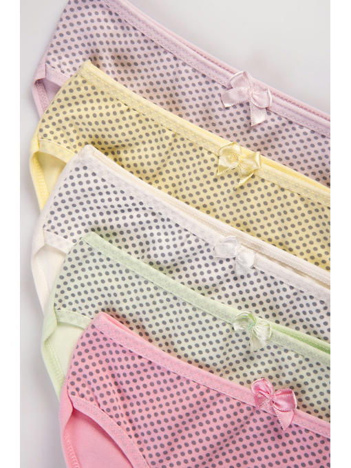 Набор трусиков в горошек для девочек – абсолютный комфорт на каждый день. Слипы выполнены из натурального хлопка с добавлением эластана. Трусики в комплекте из 5 штук станут надежными спутниками в ежедневных приключениях. За счет небольшого количества эластана детские слипы комфортно сидят и сохраняют первоначальные размеры после многочисленных стирок.