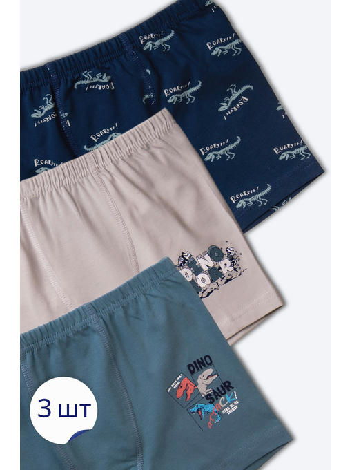Комплект боксеров выполнен из хлопкового трикотажа высокого качества, прочного и мягкого, в наборе 3 шт. по 1 паре разного цвета и дизайна. Боксеры Baykar для мальчиков и подростков декорированы принтом динозавр, в поясе эластичная резинка, все швы гладкие и аккуратные, не будут натирать нежную детскую кожу.