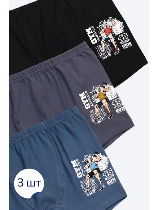 Комплект трусов для мальчика включает 3 шт. трусов базовых цветов: черный, серый и синий. Натуральный хлопок позволяет коже дышать. Добавление эластана способствует лучшей прочности. Все швы гладкие и аккуратные, не будут натирать.