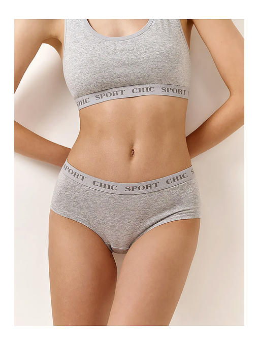 Хлопковые женские трусы-шортики с низкой линией талии, брендированной резинкой, х/б ластовицей и широкой боковиной. Материал в составе отлично пропускает воздух, впитывает влагу, приятно прилегает к телу и подходит даже для самой чувствительной кожи, а добавление эластана способствует превосходному облеганию