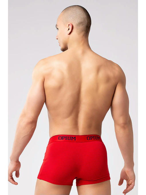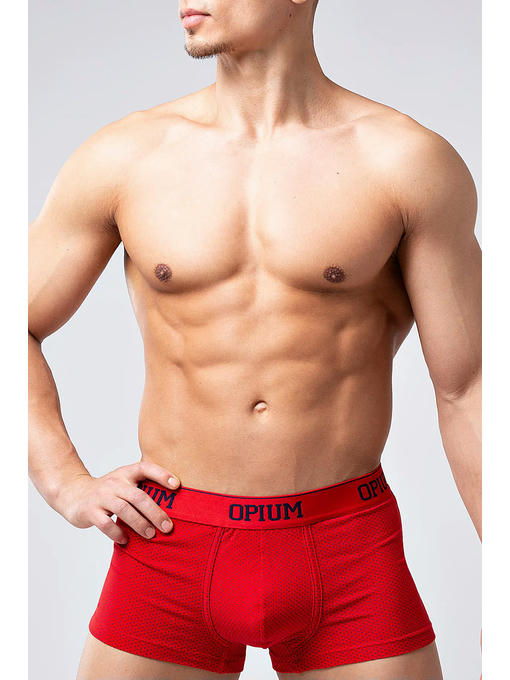 Мужские укороченные боксеры из мягкого хлопкового трикотажа. Двухслойный гульфик и дополнительная вставка обеспечивают комфортную посадку. Широкий эластичный шелковистый пояс с вывязанным логотипом Opium. Нешаблонная ярко-красная расцветка в мелкий горошек понравится смелым и незаурядным мужчинам