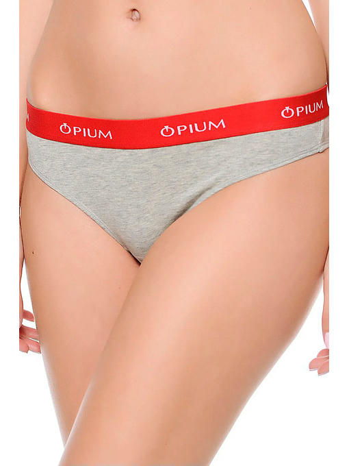 Трусы-стринг с заниженной талией из хлопка с эластаном, с комфортной фирменной резинкой нарядного контрастного красного цвета с логотипом OPIUM, на каждый день и занятий спортом, выполнены в трех цветах