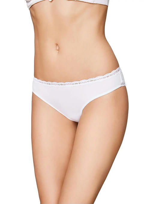 Классические трусы-бразильяна из хлопка с эластаном, пояс и края задней части обработаны кружевом, низкая посадка