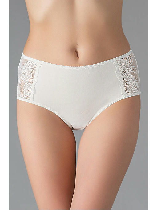 Классические трусы-макси из хлопка с эластаном, по бокам кружевные вставки, ажурная отделка края, высокая посадка