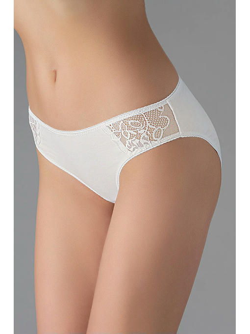 Классические трусы-слипы из хлопка с эластаном, по бокам кружевные вставки, ажурная отделка края, низкая посадка
