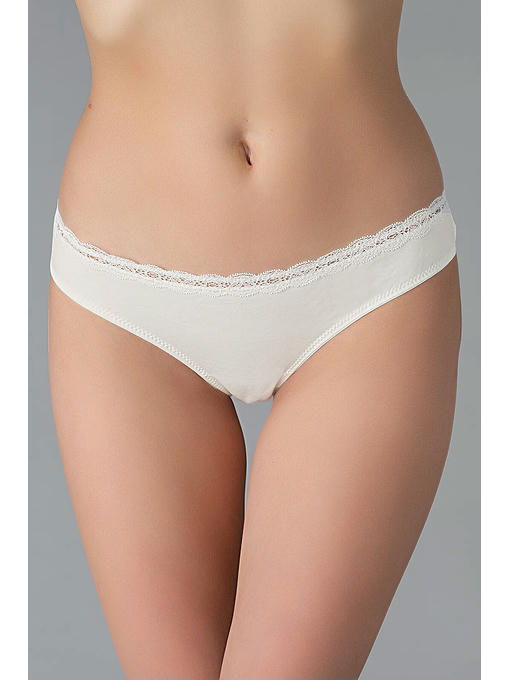 Классические трусы-бразильяна из хлопка с эластаном, пояс и края задней части обработаны кружевом, низкая посадка