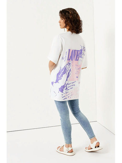 Джемпер женский – универсальное решение для базового гардероба. Он отлично комбинируется с шортами, джинсами, юбками любого цвета и длины, позволяя создавать оригинальные повседневные образы. Белая хлопковая футболка удлиненная, свободного силуэта, пошита в отпимальной размерной линейке – от 42 до 50. Скроена футболка с коротким рукавом, округлой горловиной и спущенным плечом. Это позволяет визуально скорректировать параметры фигуры. Такой фасон превосходно скрывает несовершенства, делая акцент на достоинствах. Заказывайте стильную летнюю женскую футболку недорого для себя или в качестве полезного подарка подруге, сестре, маме, дочке, жене