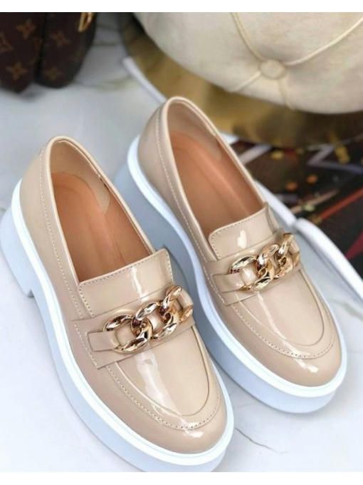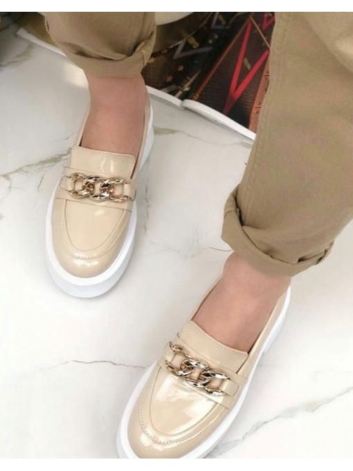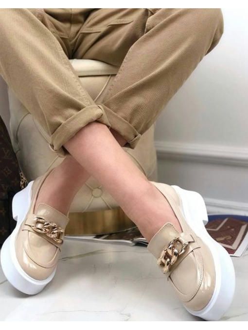 Туфли лоферы с цепочкой. Высота подошвы спереди 3,5; Высота подошва сзади 5 см.;Высота от пятки 4,5 см.; Размерная сетка: 36-23; 37-23,5; 38-24; 39-25; 40-25,5 см.