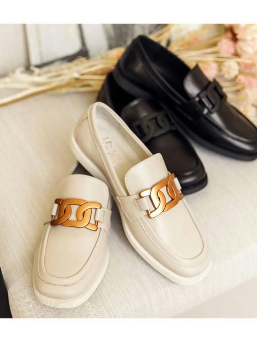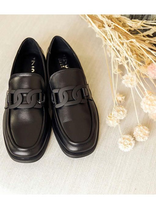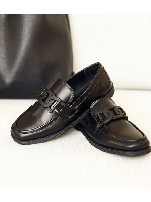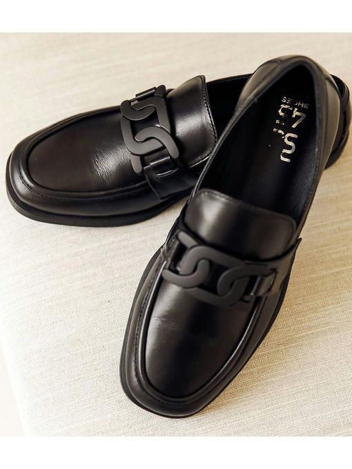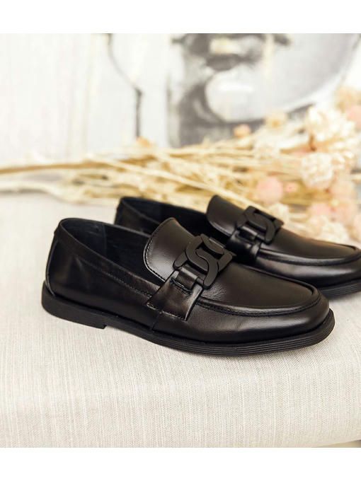Черные классические лоферы из натуральной кожи. Массивная фурнитура отчетливо подчеркивает данную модель. Лоферы невероятно стильны и практичны. Подойдут для ежедневного использования, с ними каждый образ будет более удачным.