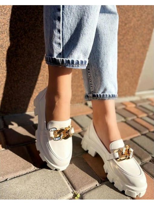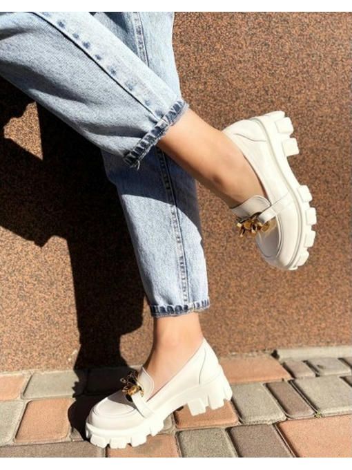 Туфли на тракторной подошве с цепями. Высота подошвы спереди – 3 см.; Высота подошвы сзади – 5 см.; Высота задника – 6 см.; Размерная сетка: 36-23,5; 37-24; 38-24,5; 39-25; 40-26; 41-26,5 см.