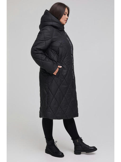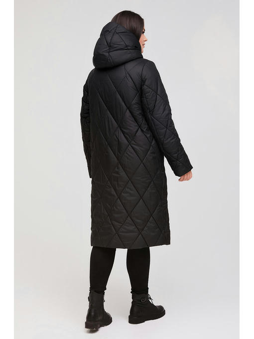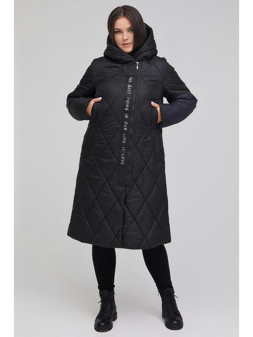 Удлиненная пальто из плащевой ткани стежка ромб. Аобразный силуэт. Утеплитель slimtex 150. Рукав втачн. Капюшон несъемный на кулиске. Манжеты на рукаве выполнены из трикотажа. По переду изделия декаративная накатка. Есть два двойных кармана листочка на кнопках. Подкладка-полиэстр. По низу-регулируемая кулиска. Застегивается на центральную молнию и кнопки.