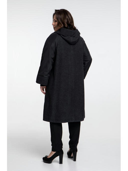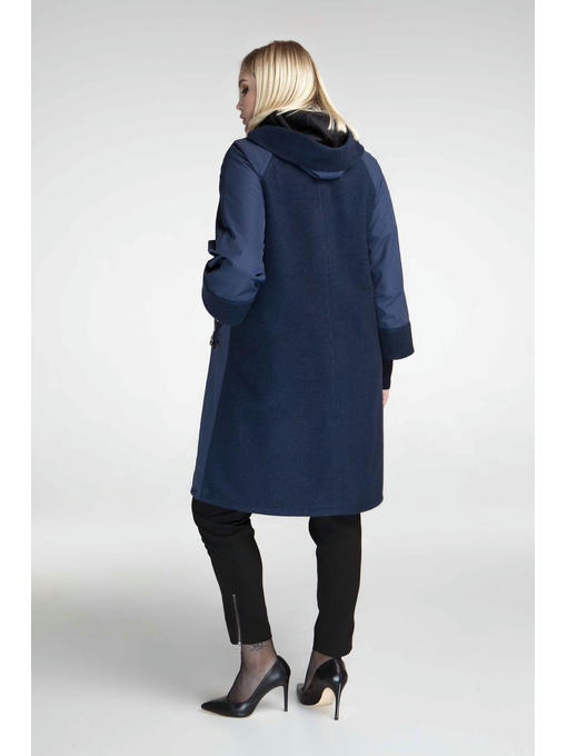 Пальто удлиненное А-образного силуэта для девушек с нестандартной фигурой. Кокетка и манжеты рукава выполнены из пальтовой ткани что придает образу элегантности. Подкладка вельбо (материал очень приятный на ощупь). Рукав укороченный с трикотажным манжетом. Спинка выполнена из пальтовой ткани. Два кармана на молниях, украшены декоративным шнуром и люверсом. Капюшон из пальтовой ткани, оригинально декорирован молнией. Изделие утеплено на slimtex 100. Отлично подойдет как под брюки, так и под юбку.