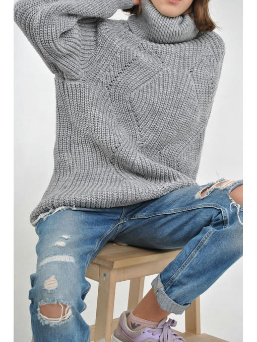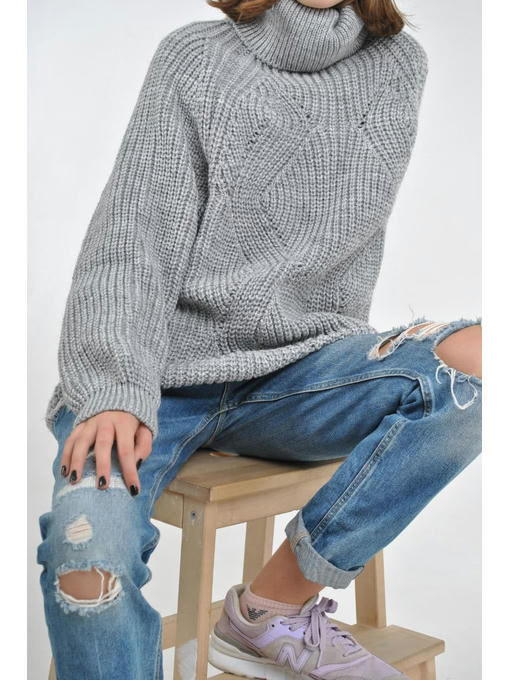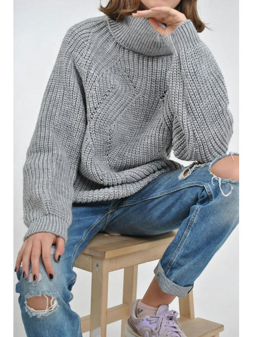Удлиненный женский свитер крупной вязки с рукавом реглан черный