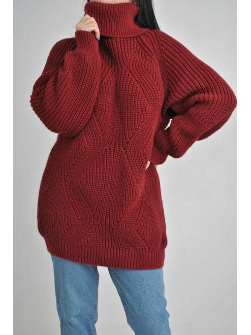 Удлиненный женский свитер крупной вязки горчичного цвета