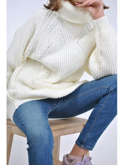 Удлиненный женский свитер крупной вязки вишневого цвета