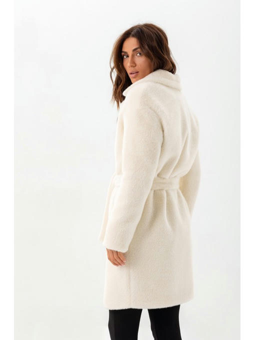 Утепленная шуба из эко альпаки белая