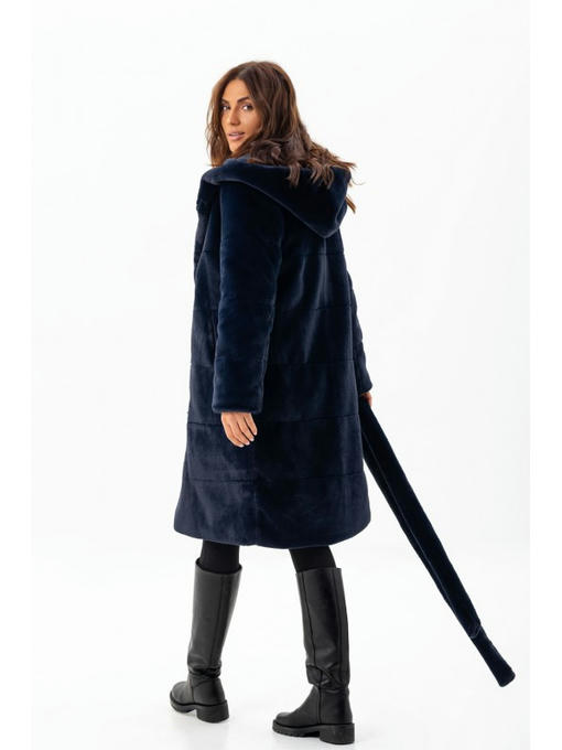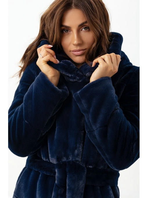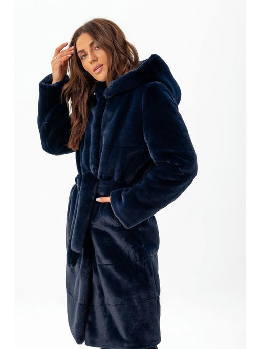 Утепленная шуба с отстрочкой настоящая находка, если вы не терпите морозы. Шубка из эко кролика на утеплителе слимтекс хорошо сохраняет тепло, а защиту от холода гарантирует вшитый капюшон. По основанию модели и рукавам горизонтальная отстрочка. Втачные рукава, прорезные карманы. Длина модели ниже колен. Застегивается шубными крючками. Есть пояс.