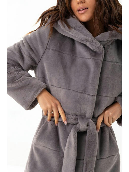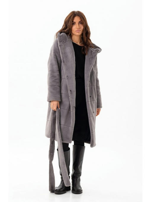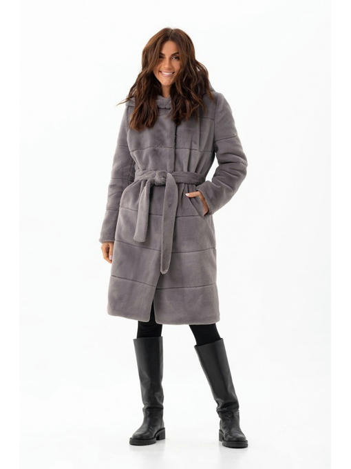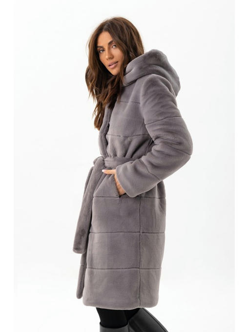 Утепленная шуба с отстрочкой настоящая находка, если вы не терпите морозы. Шубка из эко кролика на утеплителе слимтекс хорошо сохраняет тепло, а защиту от холода гарантирует вшитый капюшон. По основанию модели и рукавам горизонтальная отстрочка. Втачные рукава, прорезные карманы. Длина модели ниже колен. Застегивается шубными крючками. Есть пояс.
