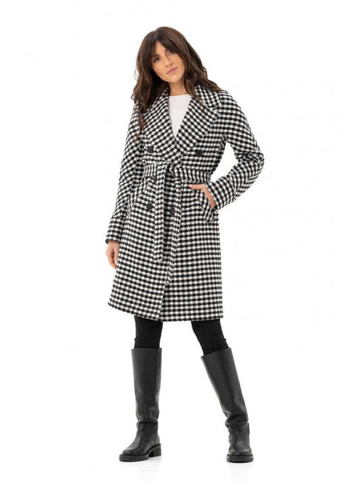 Утепленное двубортное пальто – безусловное совершенство. Прямое пальто оверсайз рассчитано на весенне-осенний период. Изделие выполнено из шерстяной ткани с модным принтом в гусиную лапку. Утепленное слимтексом