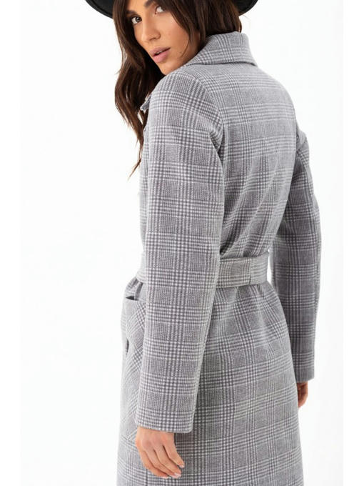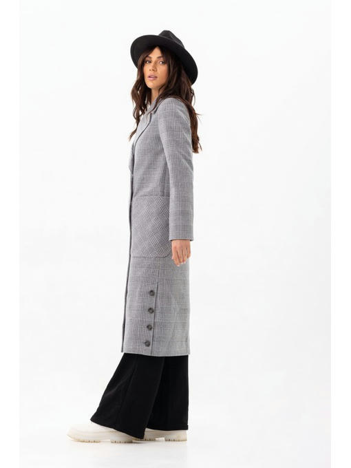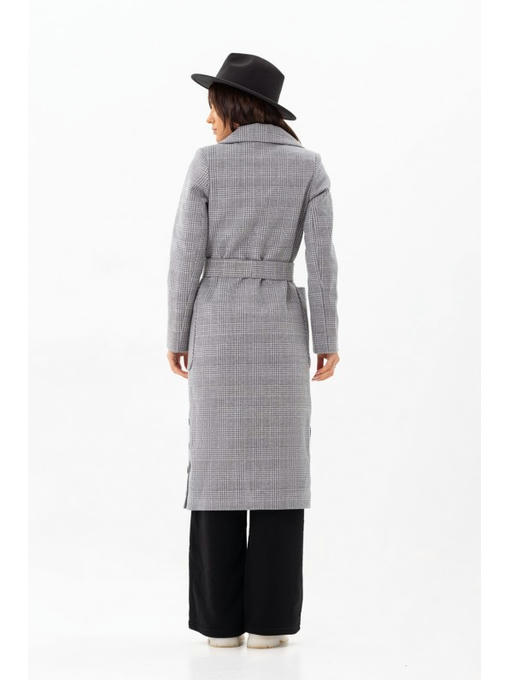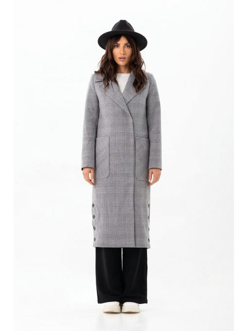 Утепленное пальто в клетку впечатляет интересной дизайнерской задумкой. Прямое женское пальто сшито из эффектной шерстяной ткани в клетку. Утеплитель слимтекс. Отложной воротник. Втачные рукава. Накладные карманы По бокам разрезы на функциональных пуговицах. Застежка кнопками. В комплекте пояс.