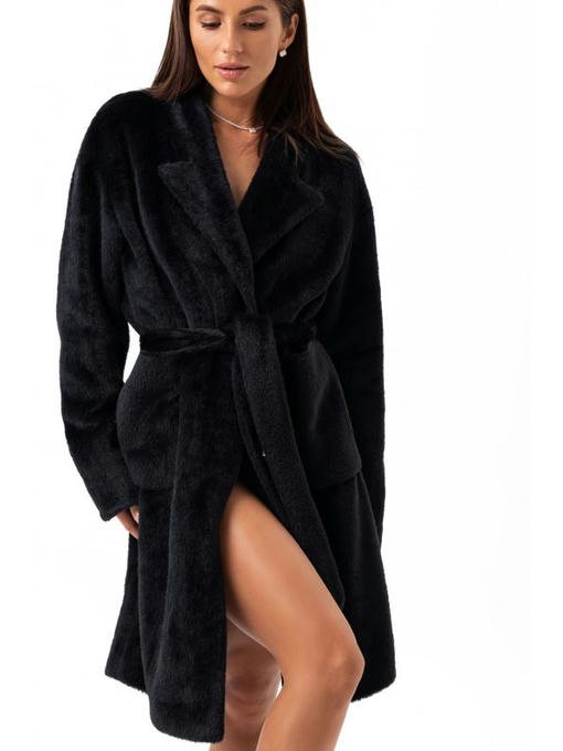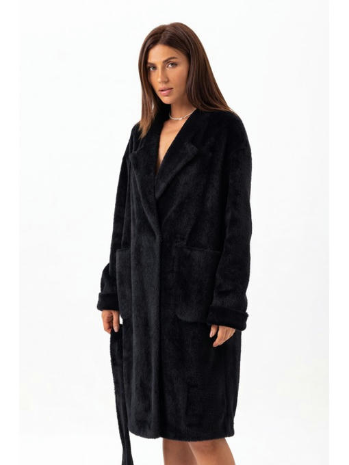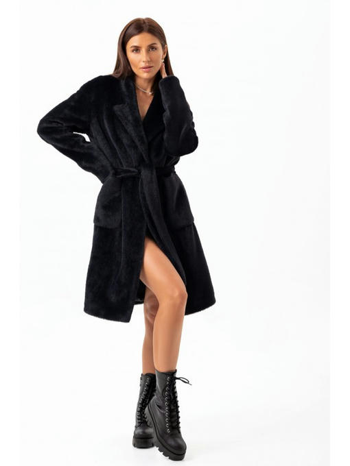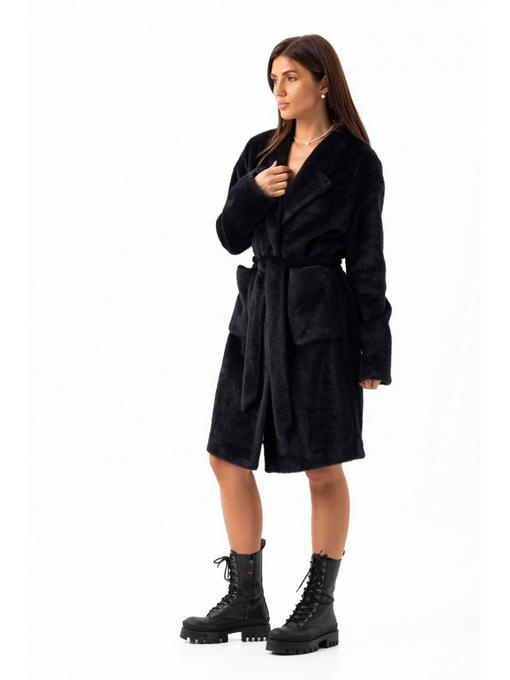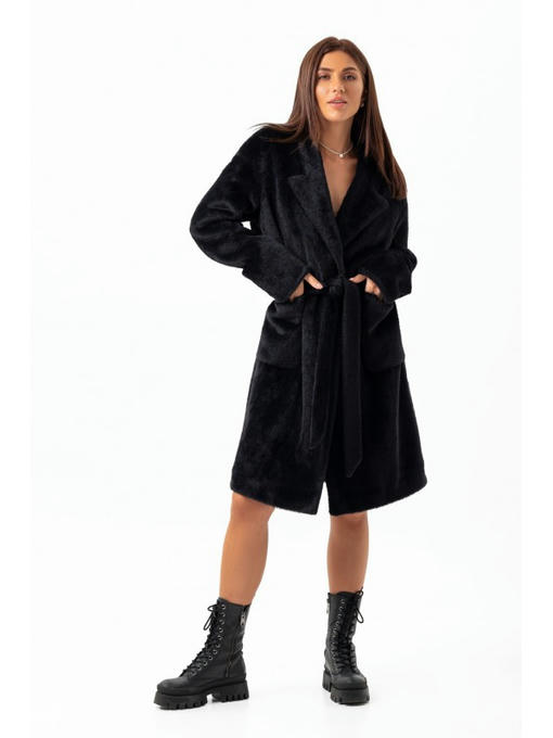 Утепленное пальто из экоальпаки черное