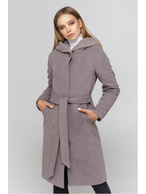 Капюшон – преимущество данного пальто. Для его пошива использована основная ткань и трикотажная вставка с красивой вязкой. Такой головной убор нежно обрамляем голову, препятствуя осадкам и ветру.