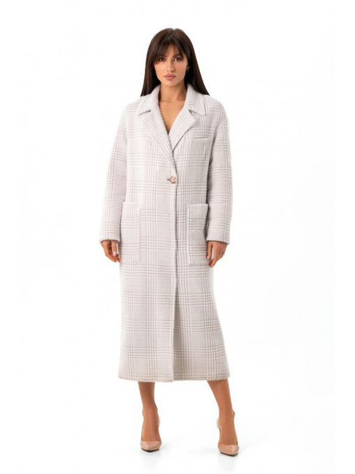 Утепленное пальто с принтом отвечает всем модным тенденциям. Свободный прямой крой, спущенное плечо, накладные карманы, рисунок в клетку на ткани.