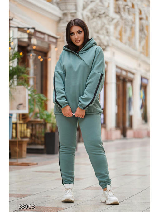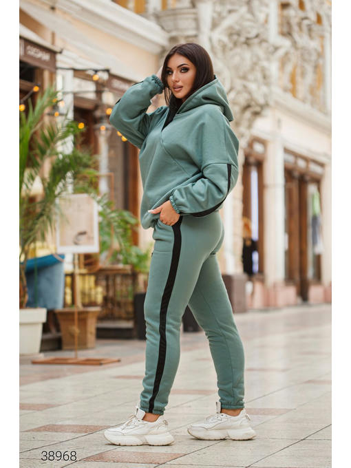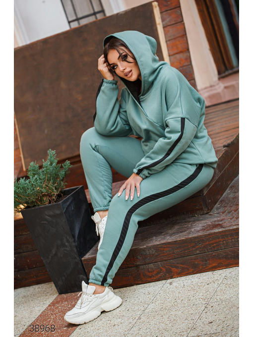 Утепленный спортивный костюм с лампасами. Худи с капюшоном и штаны. Ткань: трикотаж трехнить с начесом тедди.