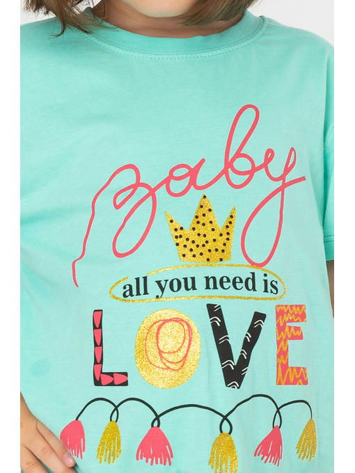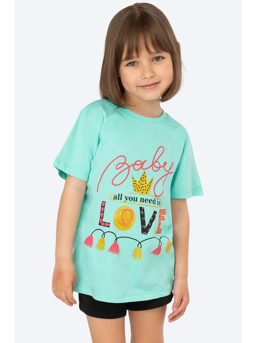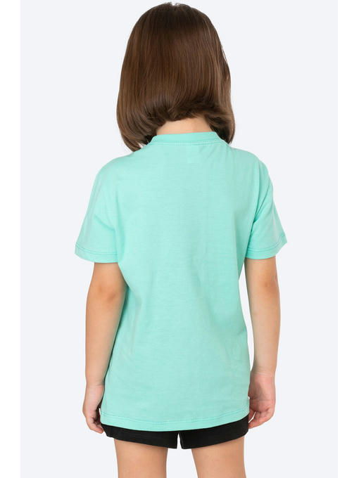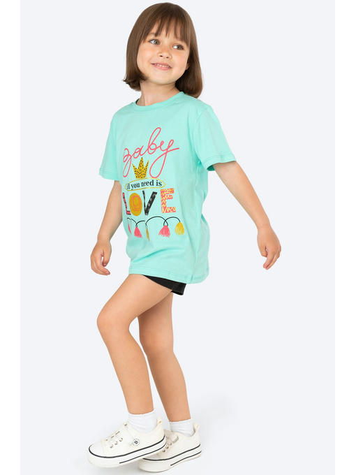 Невероятно приятная к телу футболка для девочек сшита из легкой кулирной глади. Натуральная 100% хлопковая ткань гипоаллергенна, отлично выдерживает частые стирки без потери формы и цвета. Мягкий хлопок позволяет коже дышать. Детская футболка выполнена в ментоловом цвете и украшена милыми надписями.