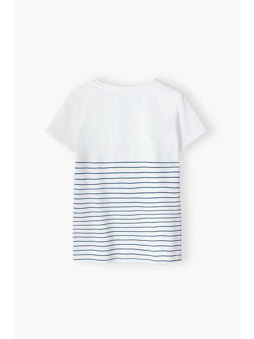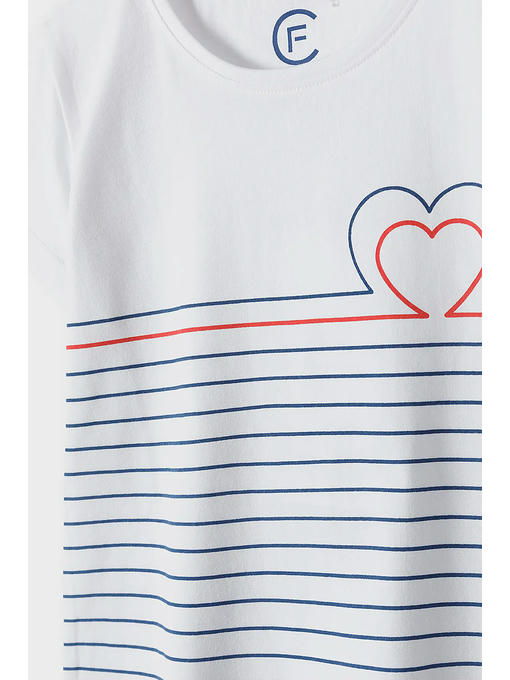 Футболка белого цвета для девочки изготовлена __из высококачественного приятного на ощупь хлопкового трикотажа. Футболка имеет круглый вырез горловины, прямой крой, короткие рукава. Украшена принтом в полоску и сердечком. Детская футболка подойдет к любому летнему наряду и будет отлично смотреться в сочетании со спортивными штанами, джинсами, шортами, леггинсами и юбками