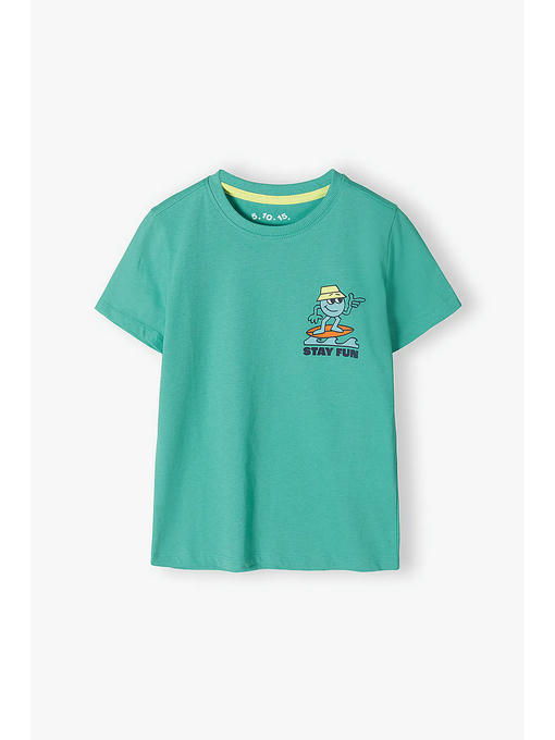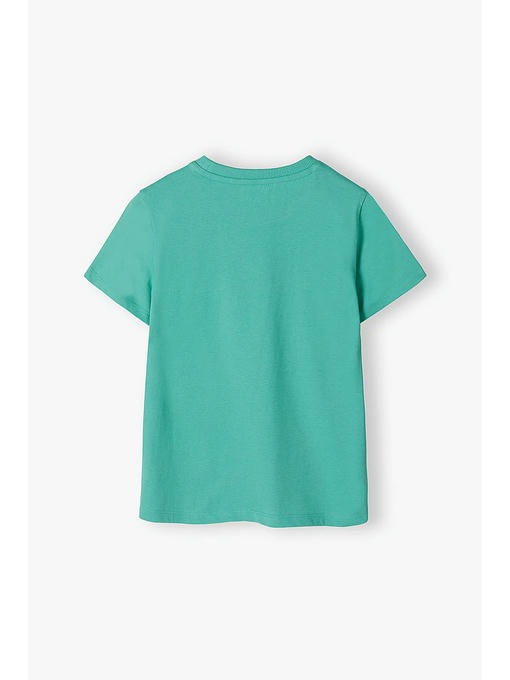 Футболка бирюзового цвета для мальчика выполнена из качественного хлопкового трикотажа, мягкого и приятного на ощупь, не раздражает чувствительную кожу ребенка. Имеет круглый вырез горловины, свободный крой, короткие рукава. Футболка украшена забавным принтом. Благодаря качественному материалу и грамотному крою, изделие максимально комфортно для ребенка. Футболка отлично сочетается с шортами, джинсами, спортивными штанами и брюками