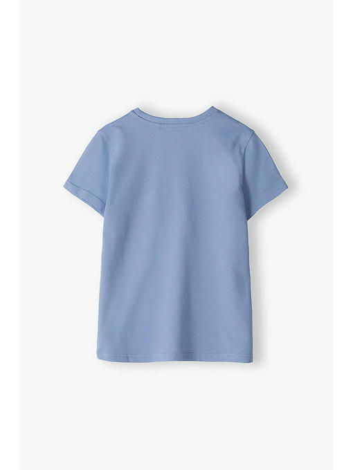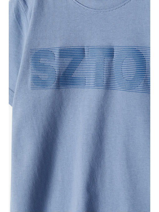 Синяя футболка с принтом для мальчика изготовлена __из высококачественного приятного на ощупь хлопка. Футболка имеет круглый вырез горловины, свободный крой, короткие рукава и украшена тактильным принтом. Детская футболка будет отлично смотреться в сочетании со спортивными штанами, джинсами, шортами и брюками карго