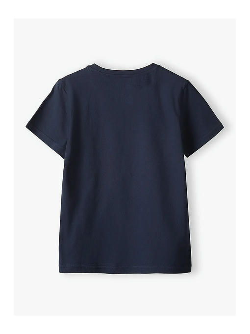 Темно-синяя футболка с принтом для мальчика изготовлена __из высококачественного приятного на ощупь хлопка. Футболка имеет круглый вырез горловины, свободный крой, короткие рукава и украшена дизайнерским принтом. Детская футболка будет отлично смотреться в сочетании со спортивными штанами, джинсами, шортами и брюками карго