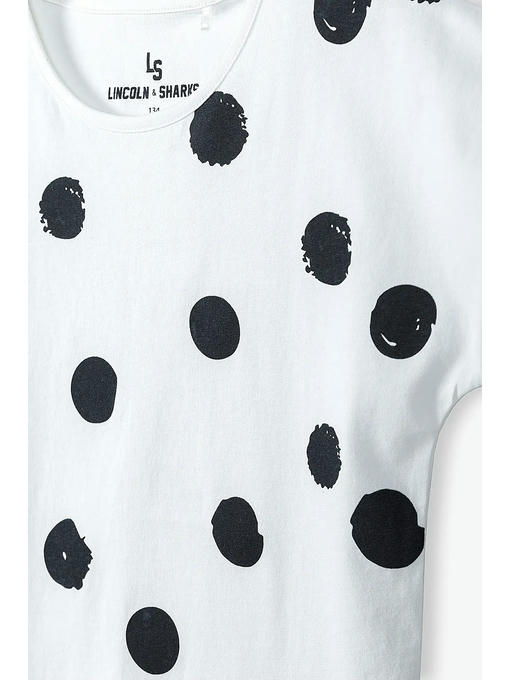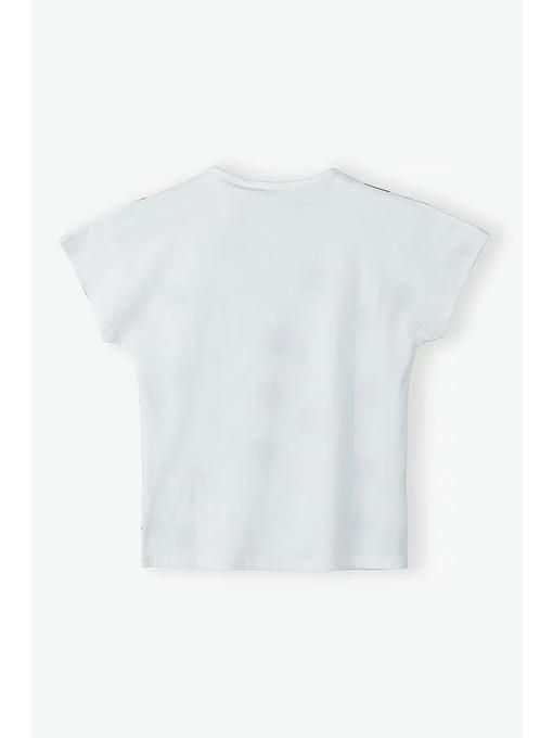 Футболка молочного цвета с коротким рукавом для девочки выполнена из хлопкового трикотажа, который прекрасно пропускает воздух и не раздражает кожу ребенка. Футболка, с оригинальным принтом, отлично подойдёт в школу и на физкультуру, прогулок на свежем воздухе и путешествий. Благодаря стильному принту, сочетается с джинсами, брюками, спортивными штанами и легинсами