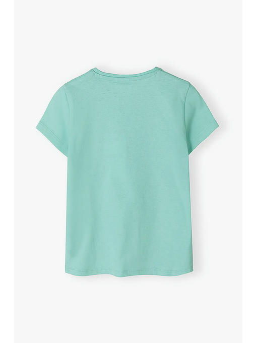 Футболка бирюзового цвета для девочки изготовлена __из высококачественного приятного на ощупь хлопкового трикотажа. Футболка имеет круглый вырез горловины, прямой крой, короткие рукава. Эта футболка привлекает внимание своим жизнерадостным принтом – сердечком, состоящим из дельфинов, очков и солнышка. Детская футболка подойдет к любому летнему наряду и будет отлично смотреться в сочетании со спортивными штанами, джинсами, шортами, леггинсами и юбками