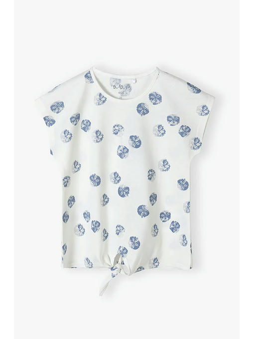 Футболка белого цвета для девочки изготовлена __из высококачественного приятного на ощупь хлопкового трикотажа. Футболка имеет круглый вырез горловины, прямой крой, короткие рукава. Футболка украшена принтом на морскую тематику. Интересным декоративным элементом также является завязка по низу футболки. Эта футболка подойдет к любому летнему наряду и будет идеально смотреться в сочетании с джинсовыми шортами, юбкой или синими шортами