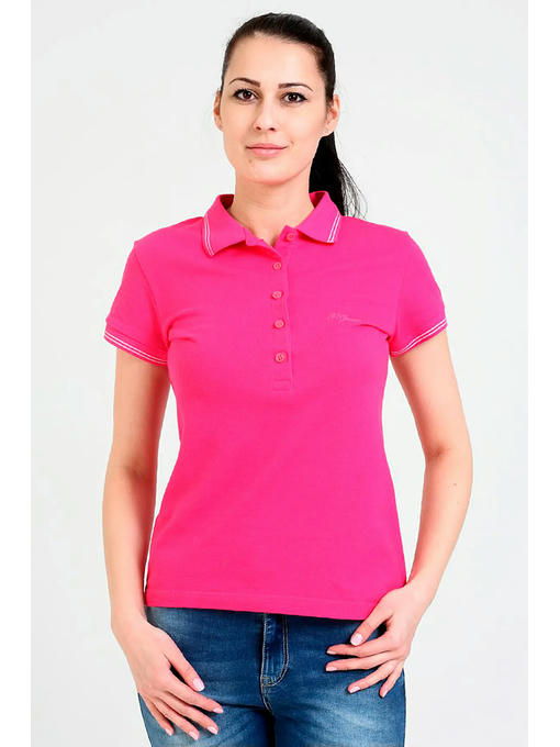 Классическая женская футболка поло F5, Regular fit (полуприлегающий силуэт), с фирменной вышивкой. Выполнена из трикотажного полотна пике (pique). С отложным воротником и короткими рукавами. Застежка-планка застегивается на 5 пуговицы