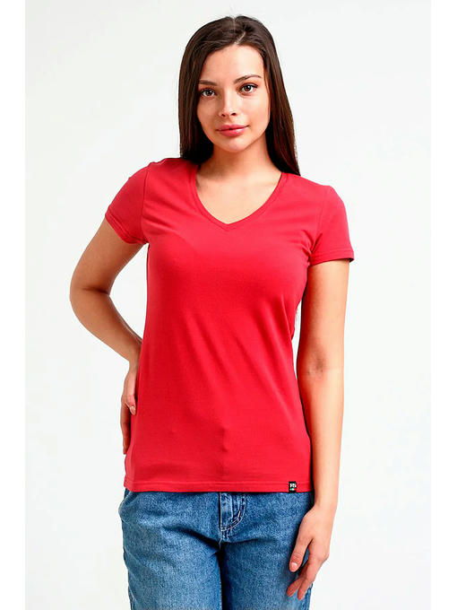 Женская футболка F5, Slim fit (прилегающий силуэт), V-образный вырез горловины, короткий рукав. Выполнена из трикотажного полотна стрейч