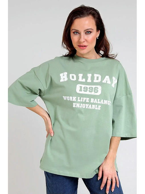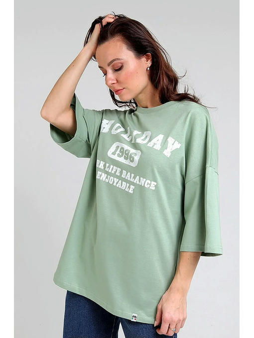 Женская футболка F5, Oversize fit (свободный силуэт), круглый вырез горловины, короткий цельнокроеный рукав. Выполнена из классического трикотажного полотна
