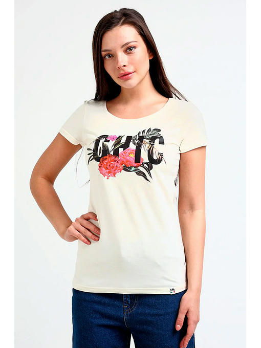 Женская футболка F5, Slim fit (прилегающий силуэт), круглый вырез горловины, короткий рукав. Выполнена из трикотажного полотна стрейч