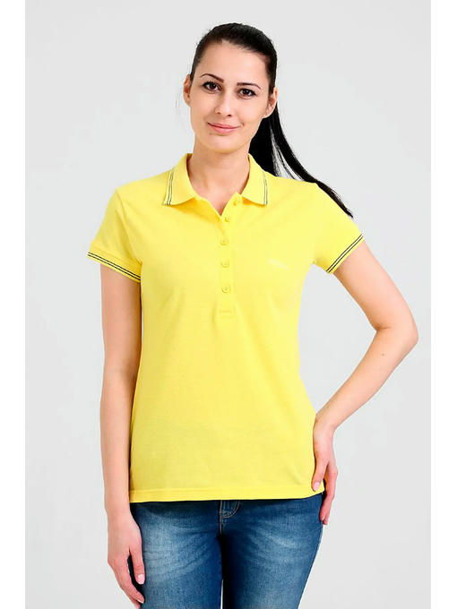 Классическая женская футболка поло F5, Regular fit (полуприлегающий силуэт), с фирменной вышивкой. Выполнена из трикотажного полотна пике (pique). С отложным воротником и короткими рукавами. Застежка-планка застегивается на 5 пуговицы