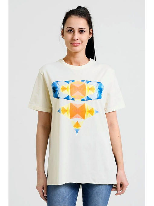 Женская футболка F5, Oversize fit (свободный силуэт), круглый вырез горловины, короткий цельнокроеный рукав. Выполнена из классического трикотажного полотна