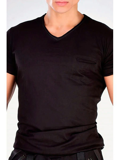 Мужская футболка с V-образным вырезом с оригинальной обработкой кромок. Изюминка модели – кармашек на груди, внутри которого нанесён логотип Opium. Футболка выполнена в самых востребованных расцветках – чёрной, серой и хаки